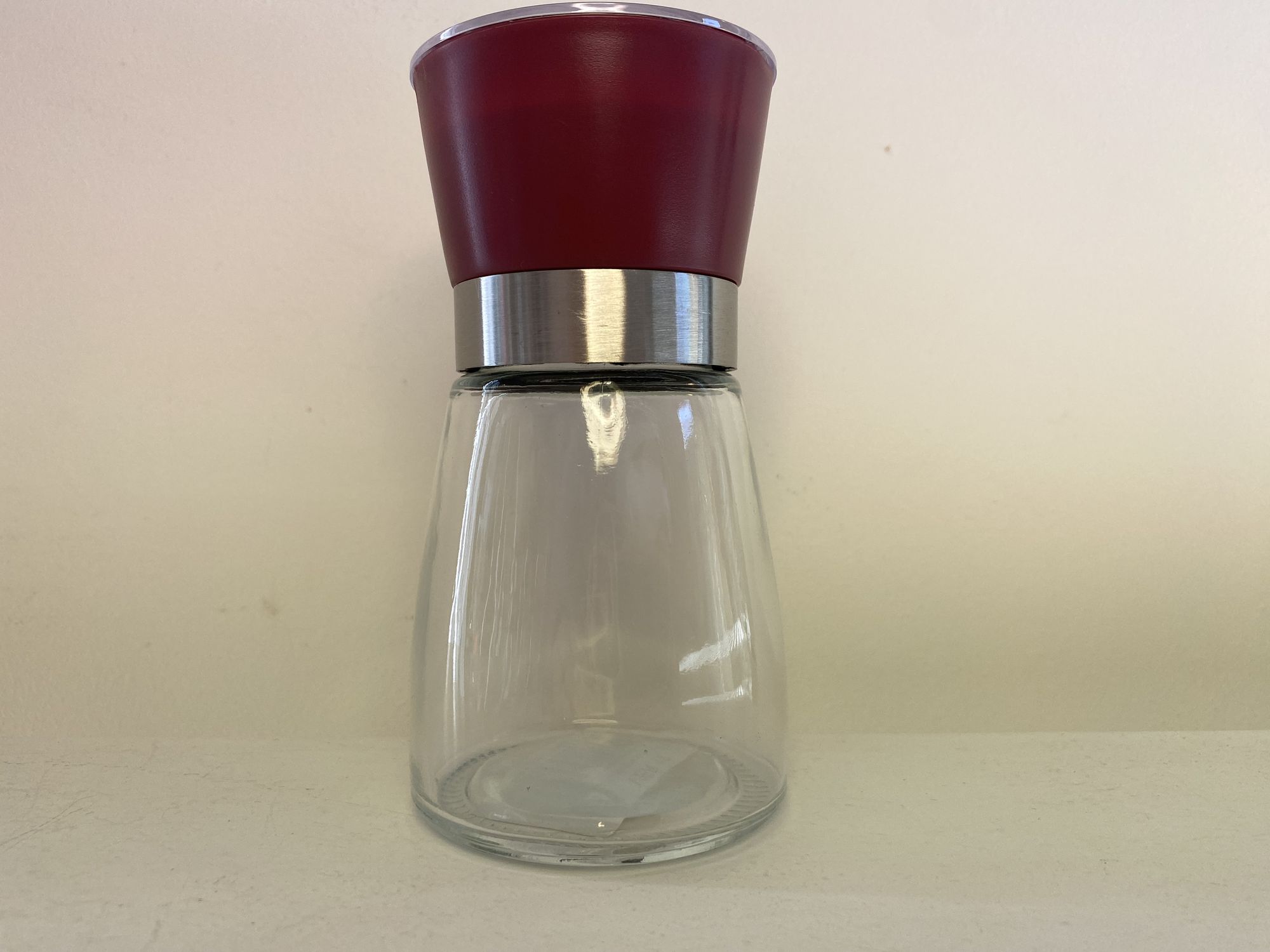 Moulin à sel ou poivre en verre et plastique, tête céramique.